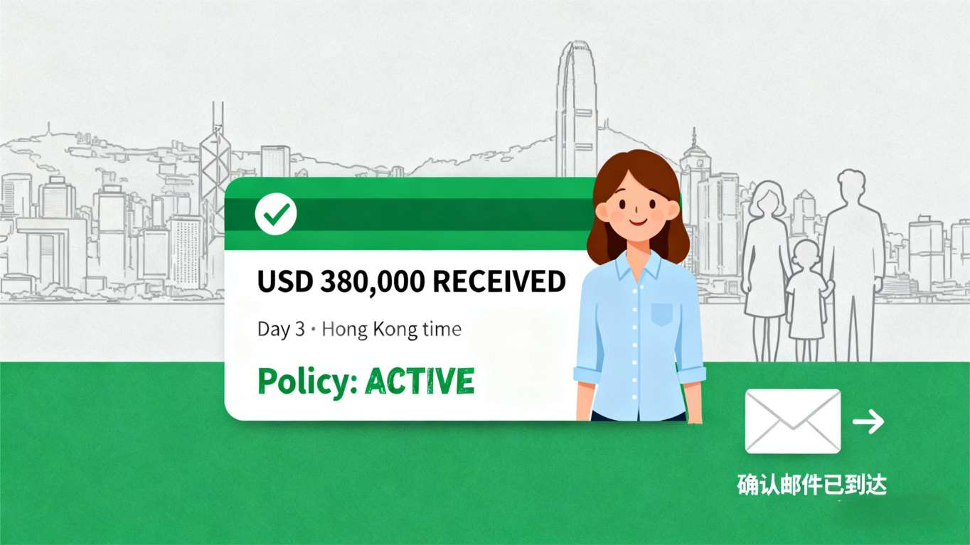 在朋友介绍下,她联系到我们。沟通后,我们团队告诉她:只需提供保险合同和收款账户,其余的由我们来完成。当天下午,邱女士就把资料发了过来,我们在当天晚上完成了审核。第二天上午,资金完成兑换,中午支付指令发出。第三天上午(香港时间),保险公司确认 38万美金 已到账,并发来了保单生效的确认邮件。