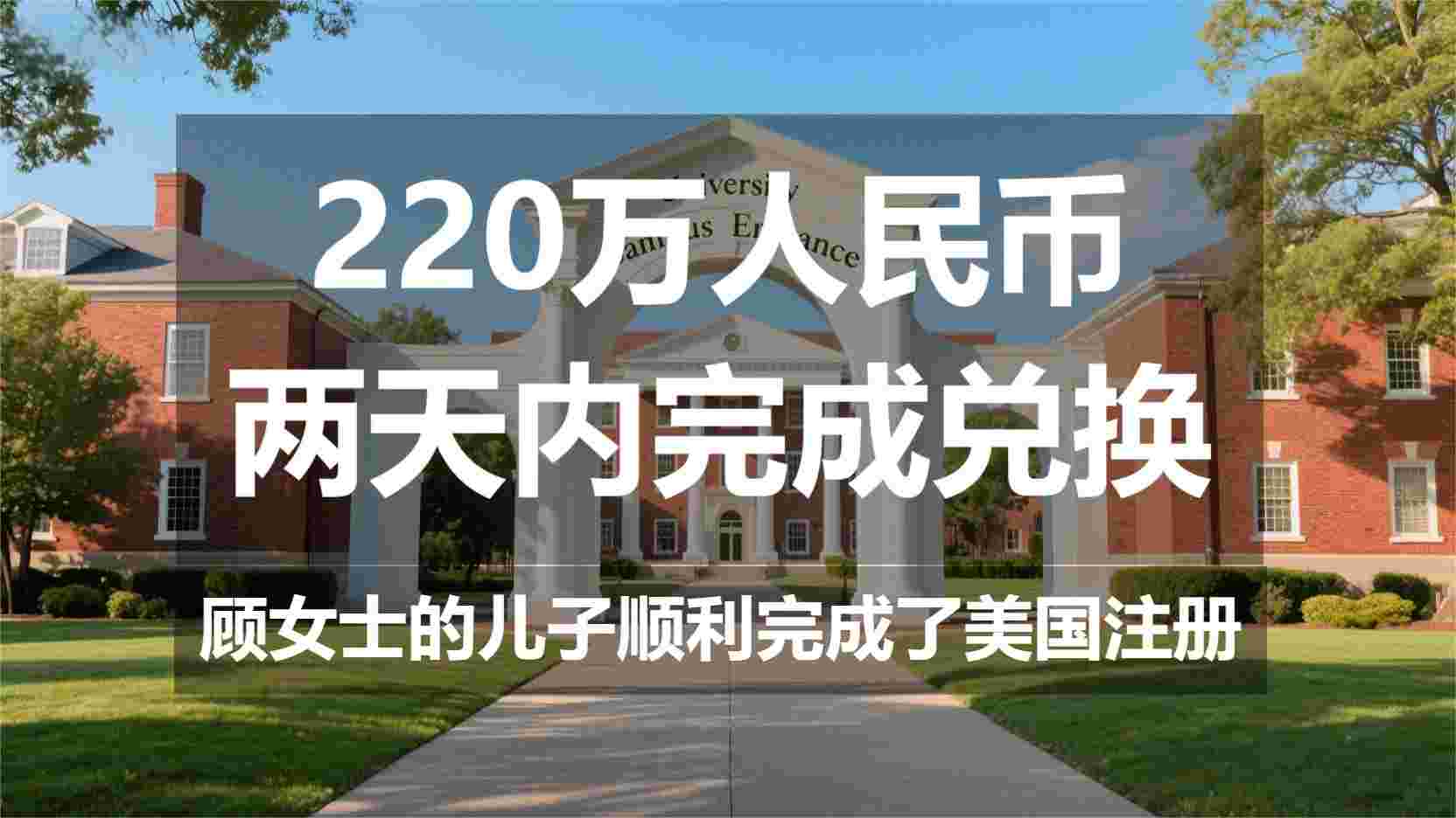 220万人民币两天内完成兑换,顾女士的儿子顺利完成了美国注册